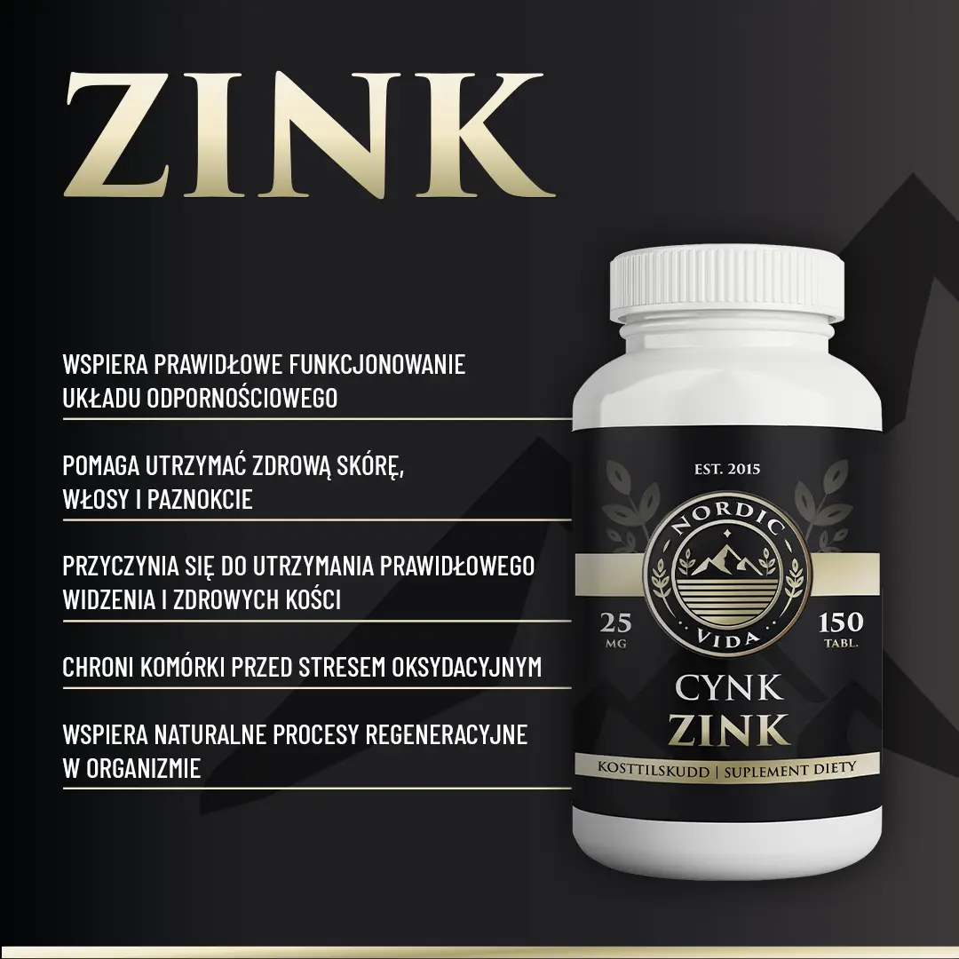 Cynk Nordic Vida to suplement diety przeznaczony do codziennego uzupełniania diety w cynk – pierwiastek śladowy obecny naturalnie w wielu produktach spożywczych.