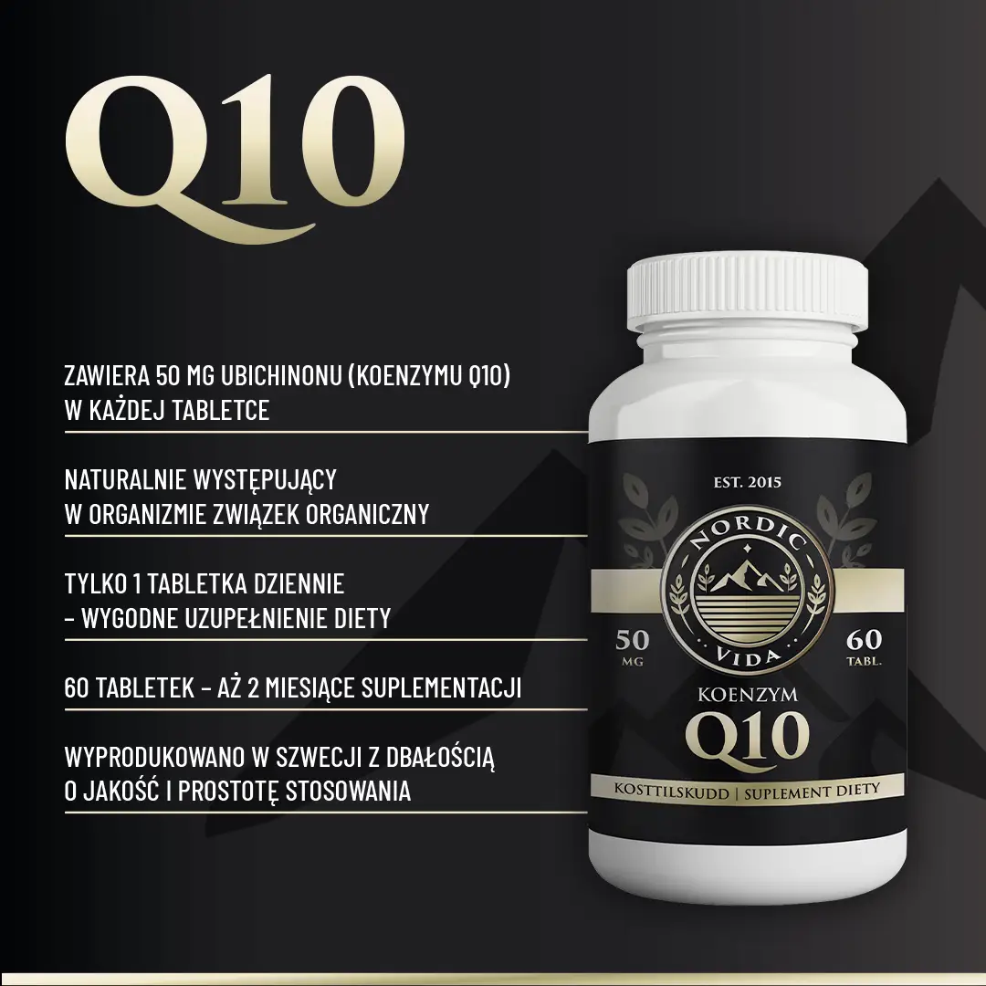 Koenzym Q10: 50 mg ubichinonu w tabletce (porcja dzienna – 1 tabletka). Opakowanie: 60 tabletek (2 miesiące).